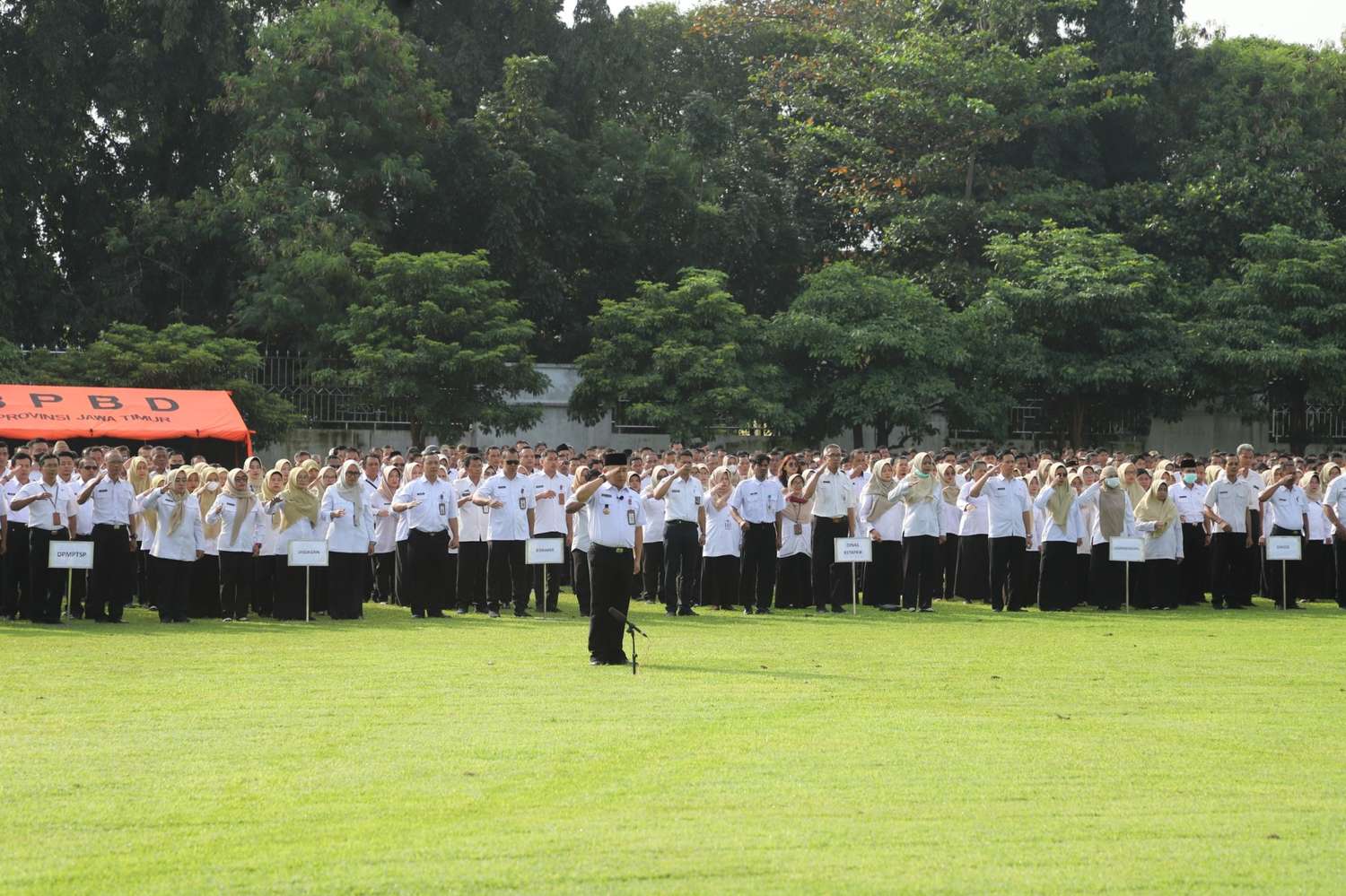 Jombang – Bupati Jombang Warsubi memimpin apel kerja Aparatur Sipil Negara (ASN) yang dirangkai dengan kegiatan halal bihalal di lingkungan Pemerintah Kabupaten Jombang pada hari pertama masuk kerja usai libur Idulfitri 1447 Hijriah. Kegiatan tersebut digelar di Lapangan Pemkab Jombang dan diikuti oleh ribuan ASN dari berbagai perangkat daerah.
