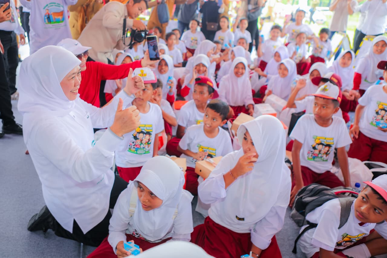 Menurut Khofifah, kegiatan minum susu bersama ini bukan sekadar membangun keceriaan, tetapi juga bagian dari upaya pemenuhan gizi terutama protein hewani bagi anak-anak sejak dini.