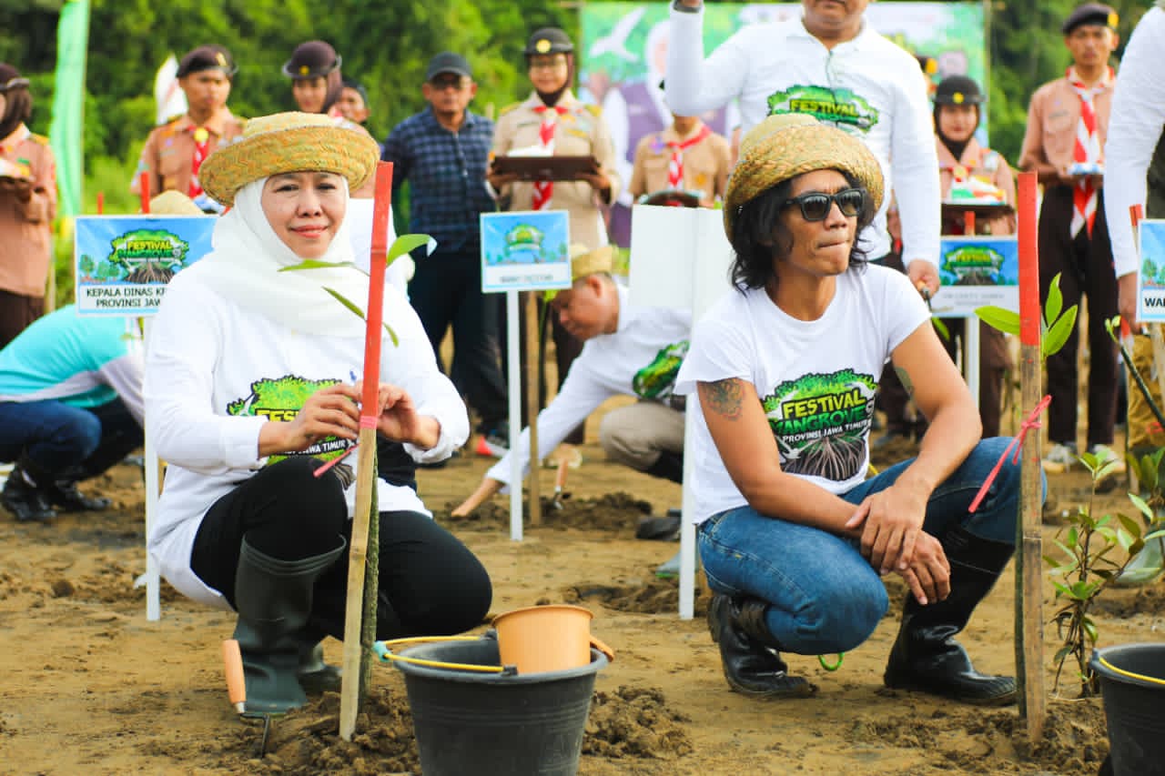 Pada kesempatan tersebut, Gubernur Khofifah bersama musisi Akhadi Wira Satriaji atau Kaka Slank menyerukan ajakan kepada masyarakat untuk menjaga lingkungan, salah satunya melalui penanaman mangrove.
