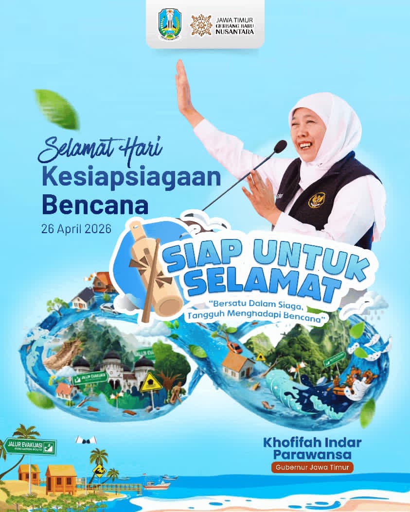 Hal itu secara khusus disampaikan Gubernur Khofifah di Peringatan Hari Kesiapsiagaan Bencana Tahun 2026 yang jatuh pada hari ini, Minggu 26 April 2026.