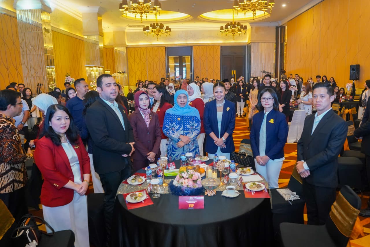Gubernur Jawa Timur Khofifah Indar Parawansa menghadiri Pelantikan Badan Otonom (Banom) Womenpreneur BPD Himpunan Pengusaha Muda Indonesia (HIPMI) Jawa Timur periode 2025-2028 di Grand Fullerton CBD Srijaya Surabaya, Kamis (25/9).
