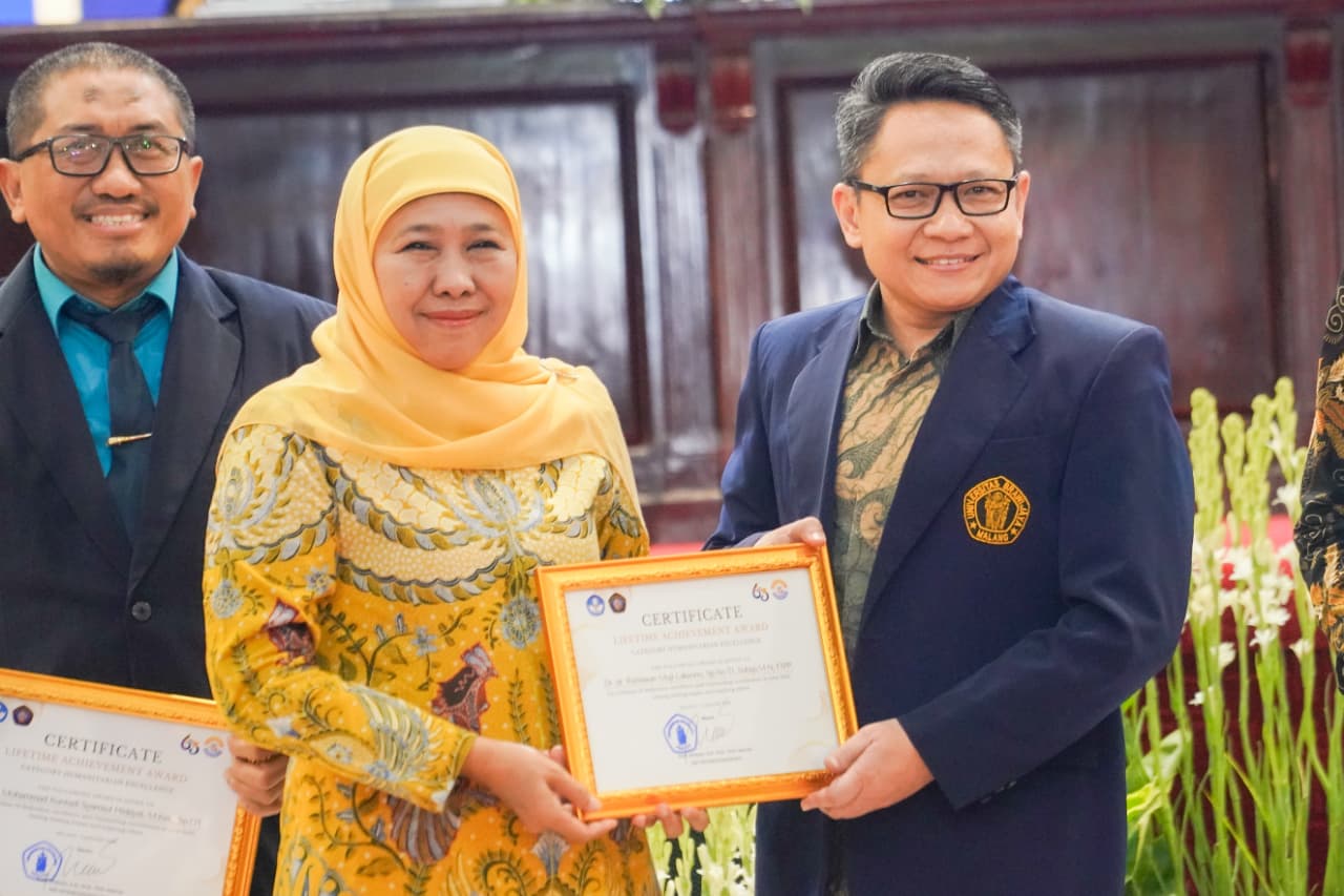 Gubernur Khofifah menyampaikan apresiasi kepada Universitas Brawijaya yang telah melakukan peran strategis sebagai perguruan tinggi dalam membangun sumber daya manusia unggul dan menghadirkan solusi konkret untuk menjawab tantangan zaman.