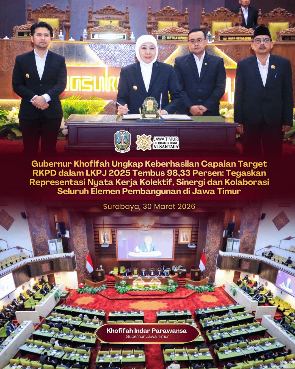 Penyampaian ini merupakan bentuk akuntabilitas penyelenggaraan pemerintahan daerah sekaligus refleksi atas capaian pembangunan Jawa Timur sepanjang tahun 2025.