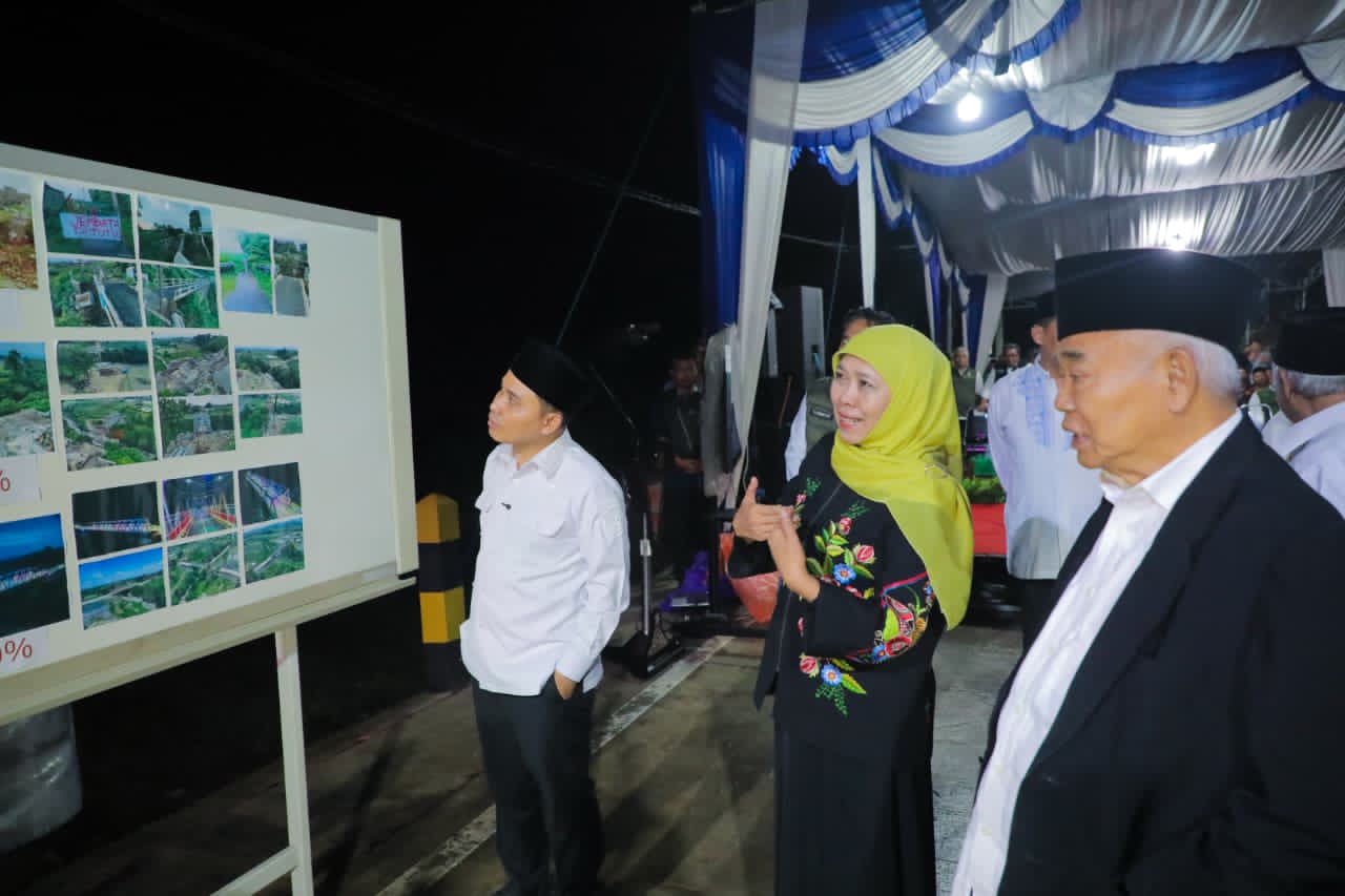 MOJOKERTO, 20 FEBRUARI 2026 – Gubernur Jawa Timur Khofifah Indar Parawansa meresmikan Jembatan Bubak di Kecamatan Gondang, Kabupaten Mojokerto, Kamis (19/2) malam. Jembatan yang sebelumnya putus akibat banjir ini kini kembali menghubungkan aktivitas masyarakat sekaligus memulihkan akses ekonomi antarwilayah.