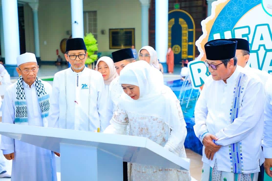 SURABAYA, 17 FEBRUARI 2026 – Gubernur Jawa Timur Khofifah Indar Parawansa menghadiri gelaran tradisi Megengan yang diawali dengan istighostay, dzikir dan sholawat tahun.ini bertema “Healing Ramadhan: Tenang Jiwa, Kuat Raga 1447 Hijriah” di Masjid Nasional Al Akbar Surabaya, Minggu (15/2), sebagai rangkaian menyambut datangnya Bulan Suci Ramadhan.