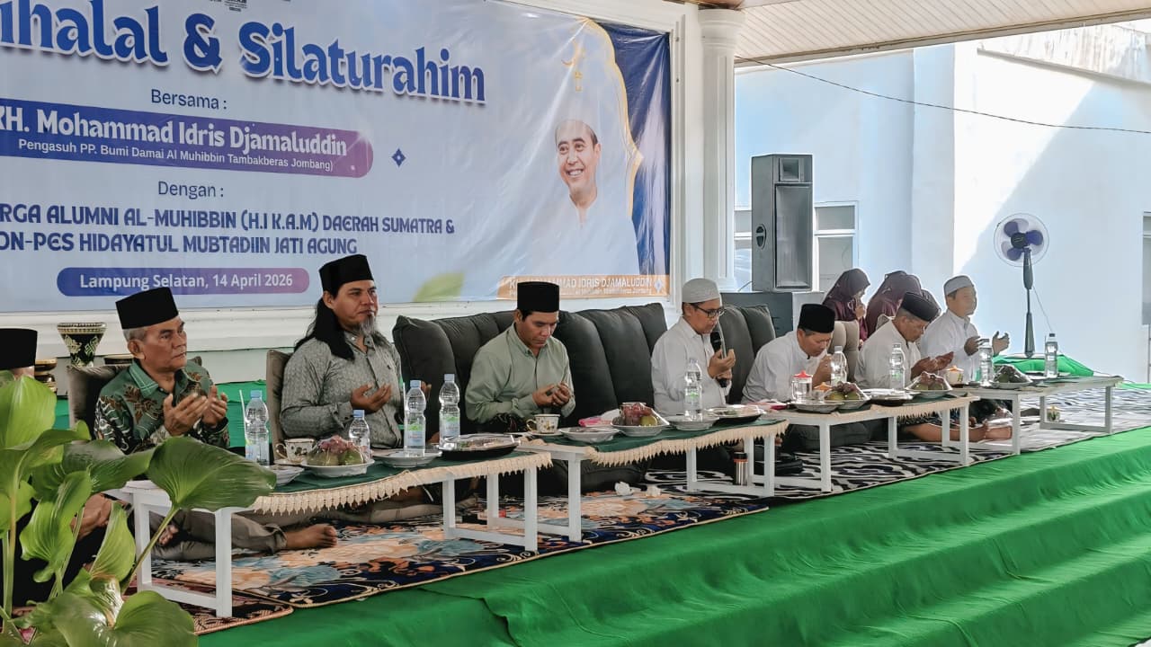 LAMPUNG SELATAN, 14 APRIL 2026 – Himpunan Keluarga Alumni Al-Muhibbin (HIKAM) wilayah Sumatra menggelar Halal Bihalal bersama Pengasuh Bumi Damai Al-Muhibbin Pondok Pesantren Bahrul Ulum Tambakberas Jombang di Pondok Pesantren Hidayatul Mubtadiin, Jati Agung, Lampung Selatan, Selasa (14/4) siang. Kegiatan ini dihadiri ratusan alumni, wali santri, serta masyarakat umum, khususnya dari wilayah Provinsi Lampung.